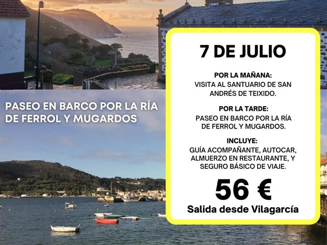 Visita al Santuario de San Andrés de Teixido Salidas desde Vilagarcía 16/06/2024 16/06/2024 San Andrés de Teixido Visita al Santuario de San Andrés de Teixido Paseo en barco por la Ría de Ferrol y Mugardos Fecha: 16 de junioPrecio: 56€ E... Leer más